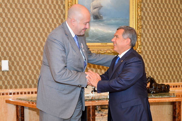 Встреча Президента РТ Р.Н.Минниханова с генеральным директором АНО "Спортивное вещание" В.А.Кикнадзе. Фото Марсель Бадыкшин