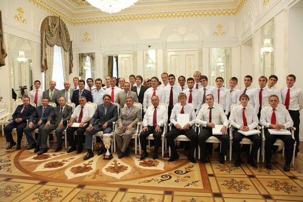 Чествование команды «Динамо-Казань» по хоккею на траве – десятикратных чемпионов России. Принимает участие Президент Республики Татарстан Р.Н. Минниханов.: фото Михаила Козловского