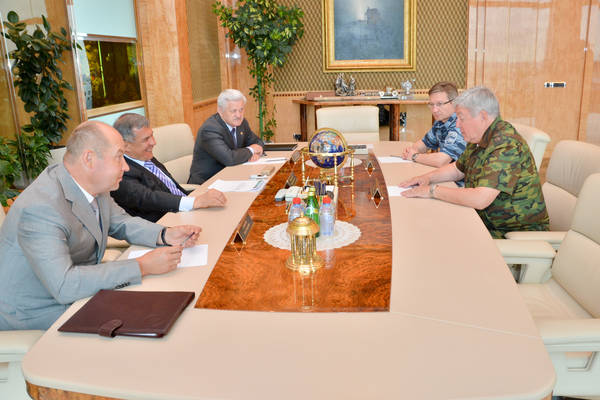 Встреча Президента Республики Татарстан Р.Н. Минниханова с начальником Казанского суворовского военного училища Владимиром Васильевичем Чайниковым 19.06.2013