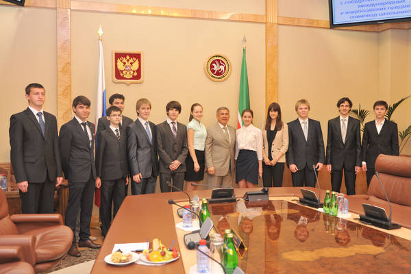 Встреча Президента Республики Татарстан Р.Н. Минниханова с победителями и призерами международных и всероссийских предметных олимпиад школьников. Фото Ринат Сафин