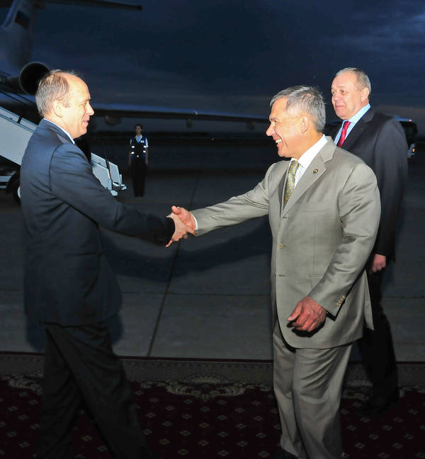 Прибытие в Республику Татарстан директора Федеральной службы безопасности Российской Федерации Александра Васильевича Бортникова. Встречает Президент Республики Татарстан Р.Н. Минниханов. 04.06.2013