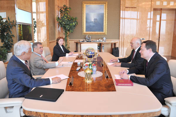 Встреча Президента Республики Татарстан Р.Н. Минниханова с первым вице-президентом ОАО «Российские железные дороги» Александром Сергеевичем Мишариным. Фото Ринат Сафин