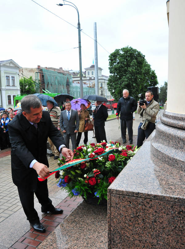 Возложение цветов к памятнику А.С.Пушкина. Принимает участие Президент РТ Р.Н.Минниханов. Фото М.Бадыкшина
