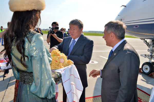 Прибытие в Республику Татарстан Акима г. Алматы (Казахстан) Ахметжана Смагуловича Есимова. Встречает Президент Республики Татарстан Р.Н. Минниханов. фото Рустема Кадырова.