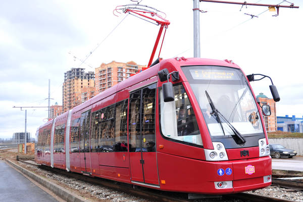 Презентация нового трехсекционного трамвая модели 84300М производства ОАО "Белкоммунмаш". Принимает участие Президент Республики Татарстан Р.Н. Минниханов. Фото Ринат Сафин