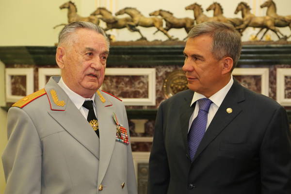 Чествование Президентом Республики Татарстан Р.Н. Миннихановым председателя общественной организации ветеранов (инвалидов) войны и военной службы Республики Татарстан Ахата Гайнулловича Юлашева по случаю 85-летия со дня его рождения: фото Михаила Козловского