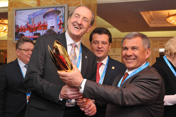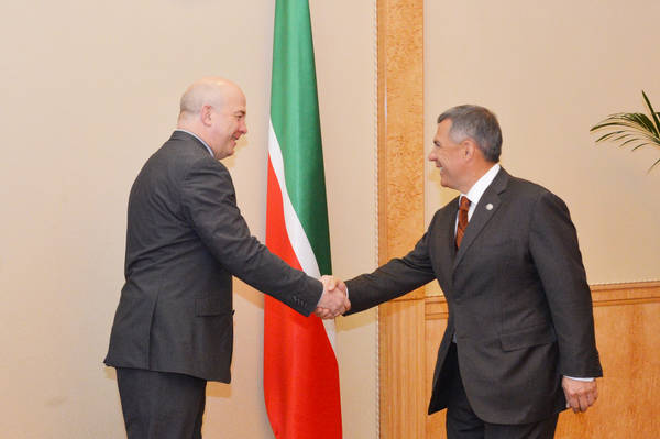 Встреча Президента Республики Татарстан Рустама Минниханова с президентом FISU Клодом-Луи Гальеном. Фото Ринат Сафин