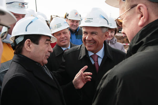 Совещание с руководителями подрядных организаций по вопросам реализации проекта строительства Комплекса ОАО «ТАНЕКО» с участием Президента Республики Татарстан Р.Н.Минниханова. Фото пресс-службы ОАО "Татнефть".
