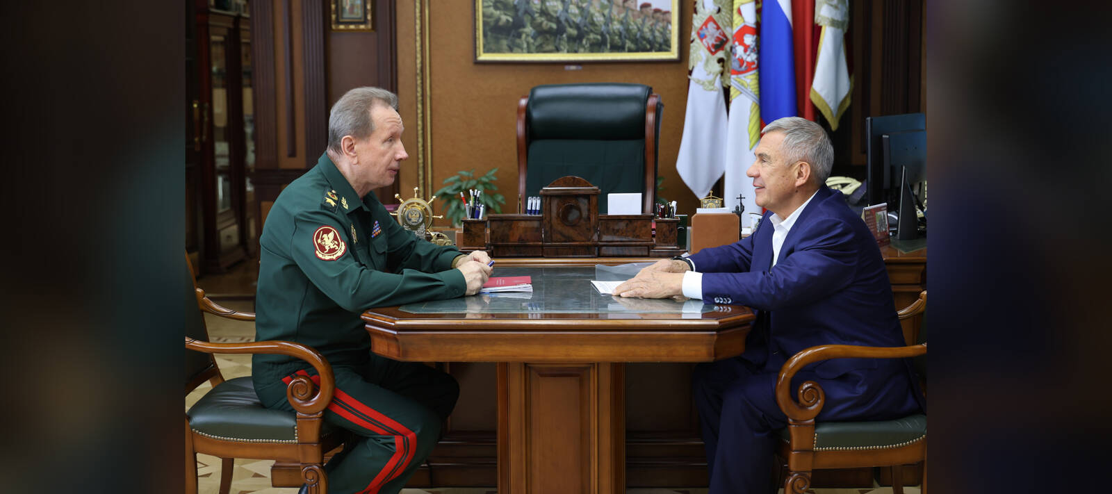 Рабочая встреча Раиса Республики Татарстан Рустама Минниханова с директором Росгвардии Героем России генералом армии Виктором Золотовым.