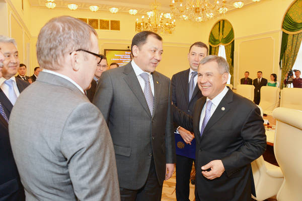 Встреча Президента Республики Татарстан Р.Н. Минниханова с Акимом Западно-Казахстанской области Нурланом Аскаровичем Ногаевым и Чрезвычайным и Полномочным Послом Казахстана в Российской Федерации Галымом Избасаровичем Оразбаковым. фото Рустема Кадырова.