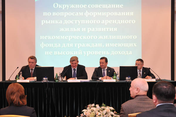 Окружное совещание по вопросу формирования рынка доступного арендного жилья и развития некоммерческого жилищного фонда для граждан, имеющих невысокий уровень дохода. Проводит заместитель Министра регионального развития Российской Федерации Сергей Михайлович Дарькин. Принимает участие Премьер-министр Республики Татарстан И.Ш.Халиков. Фото Ринат Сафин
