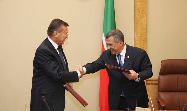 Беседа Президента Республики Татарстан Р.Н. Минниханова с Председателем Совета директоров ОАО "Газпром", Председателем Правления и генеральным директором ООО "Газпром газомоторное топливо" Виктором Алексеевичем Зубковым.: фото Михаила Козловского