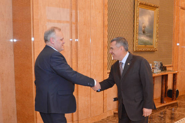 Встреча Президента Республики Татарстан Р.Н. Минниханова с генеральным директором ОАО «Центр международной торговли» Саламатовым Владимиром Юрьевичем: фото Михаила Козловского