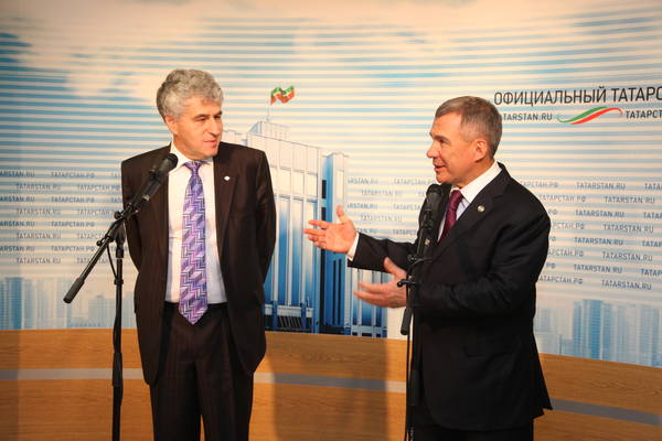 Пресс-подход к Президенту Республики Татарстан Р.Н.Минниханову и директору по гуманитарным проектам ОАО "РОСНАНО" Л.Я.Гозману: фото Михаила Козловского