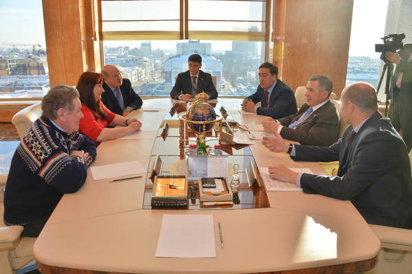 Встреча Президента Республики Татарстан Р.Н. Минниханова с заслуженным мастером спорта СССР и России, трехкратной олимпийской чемпионкой, президентом Федерации лыжных гонок России Е.В.ВЯЛЬБЕ и заслуженным мастером спорта СССР, двухкратным олимпийским чемпионом В.П.ВЕДЕНИНЫМ.фото Рустема Кадырова.