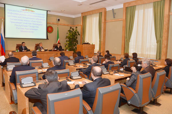 Презентация проекта по созданию информационно-образовательной системы дистанционного обучения татарскому языку «Ана теле». Принимает участие Президент Республики Татарстан Р.Н. Минниханов. Фото Рустема Кадырова.