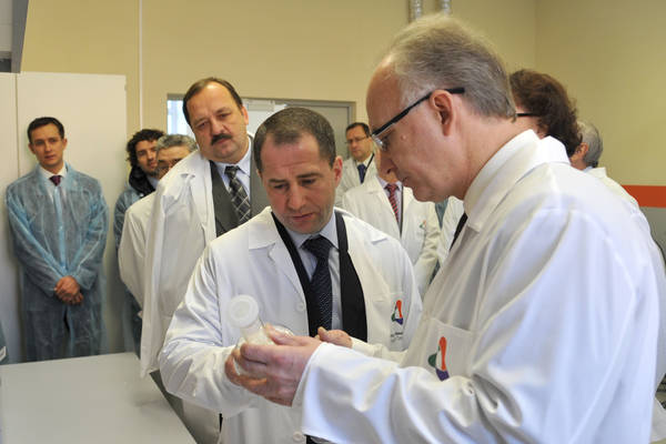 Посещение полномочным представителем Президента Российской Федерации в Приволжском федеральном округе М.В. Бабичем и Президентом Республики Татарстан Р.Н.Миннихановым Центра нанотехнологий Республики Татарстан. Фото Ринат Сафин