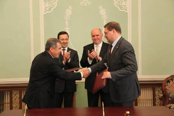 Встреча Президента Республики Татарстан Р.Н. Минниханова с руководителем Федерального агентства по делам Содружества Независимых Государств, соотечественников, проживающих за рубежом, и по международному гуманитарному сотрудничеству Константином Иосифовичем Косачевым: фото М. Козловского