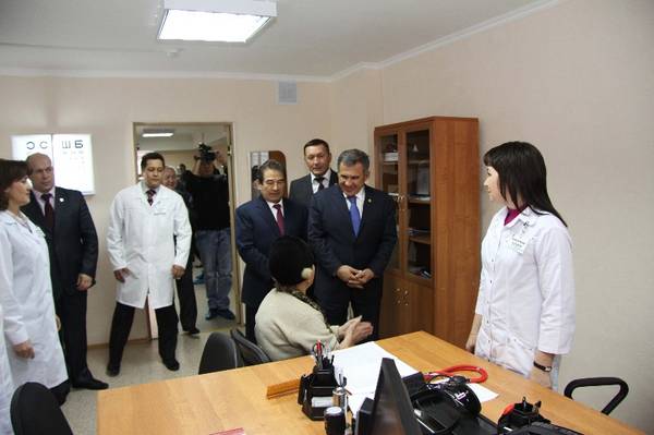 Посещение Президентом РТ Р.Н.Миннихановым офиса врачей общей практики "Семейный доктор". Фото пресс-службы ОАО "Татнефть"