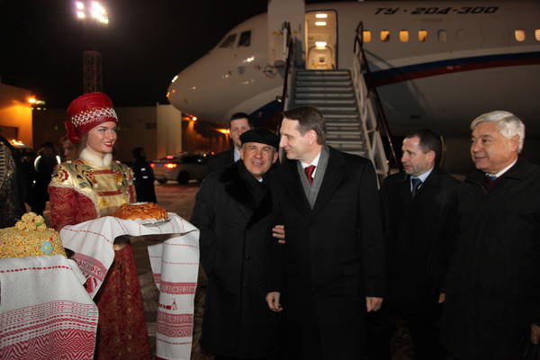 Прибытие Председателя Государственной думы Федерального Собрания Российской Федерации Сергея Нарышкина. Встречает Президент Республики Татарстан Р.Н. Минниханов.: фото М. Козловского