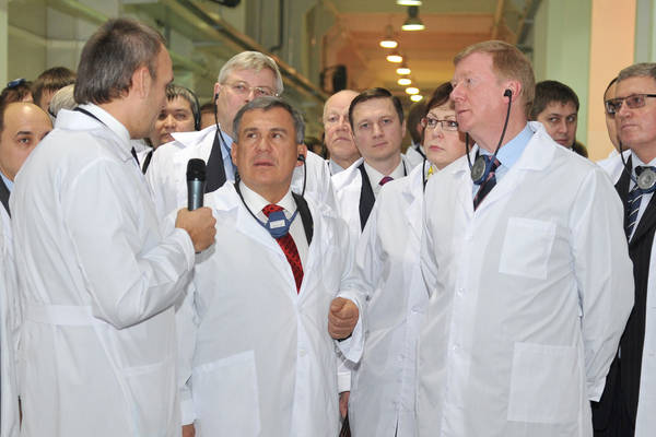 Посещение Председателем Правления ОАО «РОСНАНО» А.Б.Чубайсом, Президентом Республики Татарстан Р.Н. Миннихановым и главами субъектов Российской Федерации – членами Ассоциации инновационных регионов России ООО «Данафлекс-НАНО». Фото Ринат Сафин