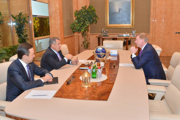 Совещание о ходе реализации Соглашения о сотрудничестве Республики Татарстан с ОАО «РОСНАНО» и Фондом инфраструктурных и образовательных программ. Проводит Президент Республики Татарстан Р.Н. Минниханов. Принимает участие Председатель Правления ОАО «РОСНАНО» А.Б.Чубайс. фото Рустема Кадырова.