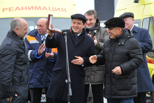 Вручение ключей от автомобилей скорой медицинской помощи для станций скорой помощи гг.Казани, Набережных Челнов, Нижнекамска, Альметьевска с участием Президента Республики Татарстан Р.Н.Минниханова. Фото Ринат Сафин