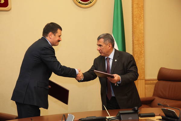 Встреча Президента Республики Татарстан Р.Н. Минниханова с Председателем Правления Банка Москвы Михаилом Кузовлевым: фото М. Козловского