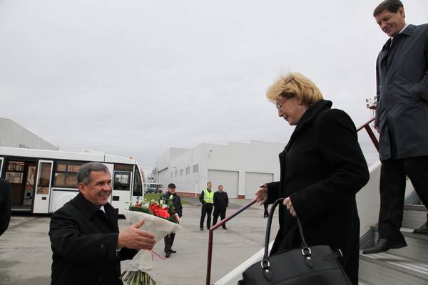 Прибытие в Республику Татарстан Министра здравоохранения Российской Федерации Вероники Игоревны Скворцовой. Встречает Президент Республики Татарстан Р.Н. Минниханов.: фото М. Козловского