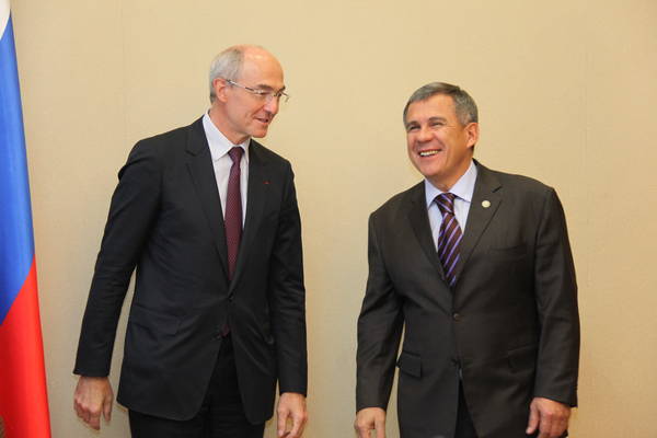 Рабочая встреча Президента Республики Татарстан Р.Н. Минниханова с Председателем Совета директоров-президентом Группы компаний “Эйр Ликид” г-ом Бенуа Потье: фото М. Козловского