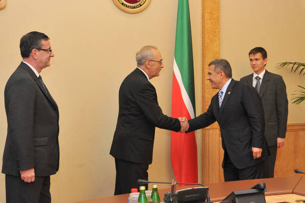 Встреча Президента Республики Татарстан Р.Н. Минниханова с экспертами Международного совета по сохранению памятников и достопримечательных мест (ИКОМОС) г-ном Виши Золтом и г-ном Гергели Надь. Фото Ринат Сафин