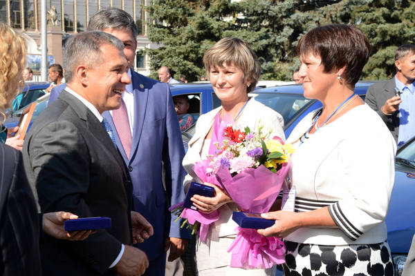 Церемония вручения Президентом Республики Татарстан Р.Н.Миннихановым автомобилей победителям Республиканского смотра-конкурса среди муниципальных образований ко Дню Республики Татарстан. фото Рустема Кадырова.