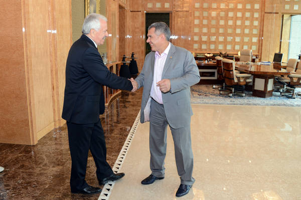 Встреча Президента Республики Татарстан Р.Н.Минниханова с вице-президентом технического комитета FIBA Ставросом Дувисом. фото Рустема Кадырова.
