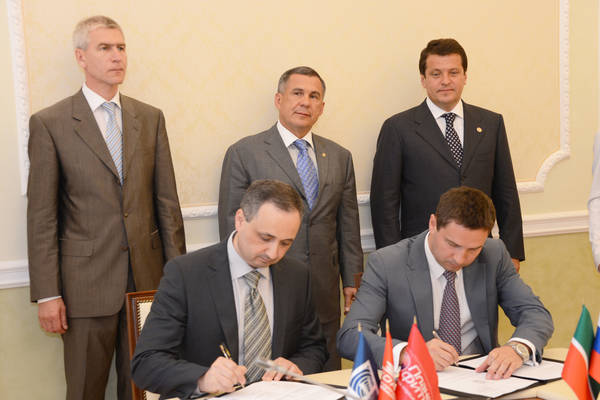 Подписание соглашений с партнерами XXVII Всемирной летней Универсиады 2013 года в .г. Казани. Принимает участие Президент Республики Татарстан Р.Н.Минниханов. фото Рустема Кадырова.