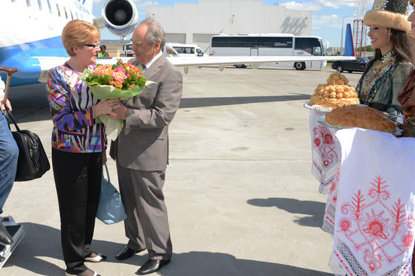 Прибытие в Республику Татарстан участников 36-й сессии Комитета всемирного наследия ЮНЕСКО из Санкт-Петербурга. Встречает Государственнй Советник Республики Татарстан М.Ш.Шаймиев. фото Рустема Кадырова.