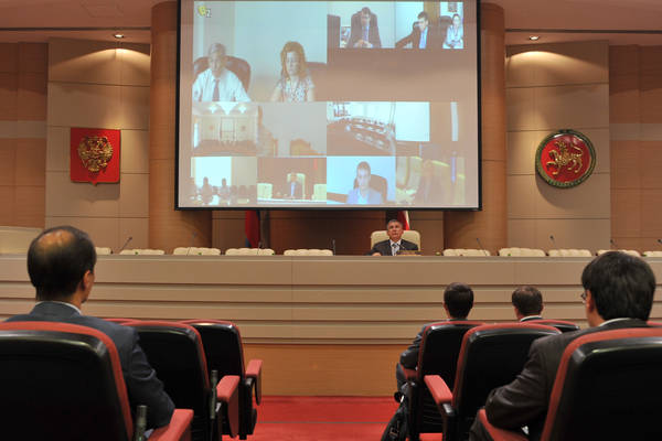 Совещание в режиме видеоконференции с руководителями комитетов «Ассоциации инновационных регионов России». Проводит Президент Республики Татарстан Р.Н. Минниханов. Фото Ринат Сафин