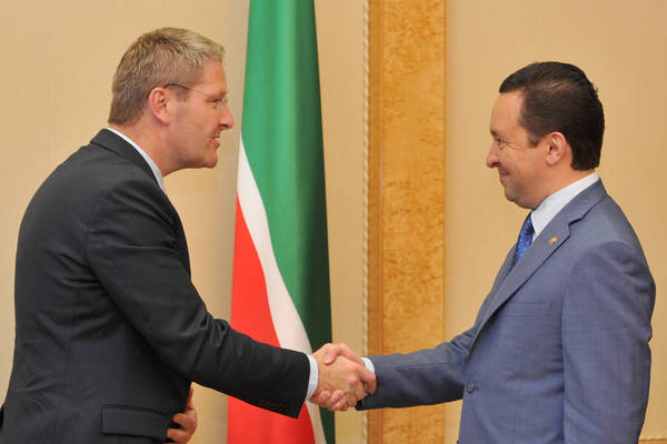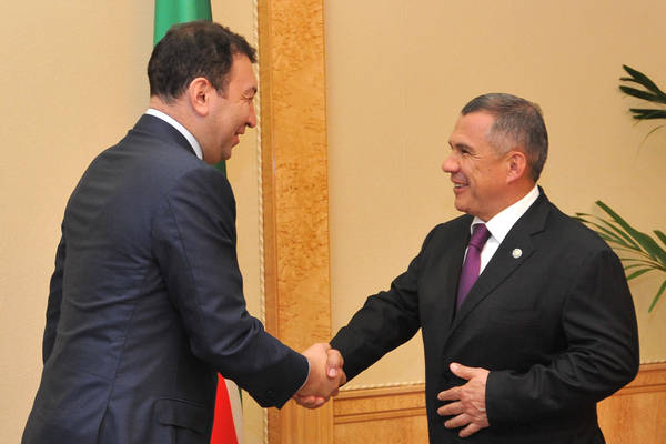 Встреча Президента Республики Татарстан Р.Н.Минниханова с Чрезвычайным и Полномочным Послом Республики Казахстан в Российской Федерации Галымом Избасаровичем Оразбаковым. Фото Ринат Сафин