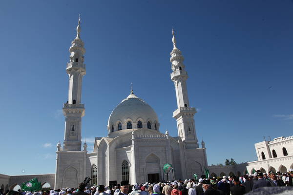 Торжественное мероприятие «Изге Болгар җыены», посвященное Дню официального принятия Ислама Волжской Булгарией. Открытие комплекса Белой мечети и медресе. Принимает участие Президент Республики Татарстан Р.Н.Минниханов и Государственный Советник Республики Татарстан М.Ш.Шаймиев: фото М, Козловского