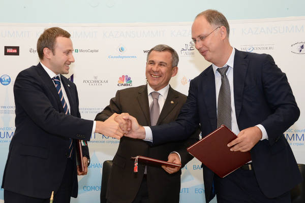 Круглый стол IV Международного саммита «Экономическое сотрудничество России и стран Организации Исламского Сотрудничества (ОИС) – KAZANSUMMIT 2012». Подписание соглашения. фото Рустема Кадырова.