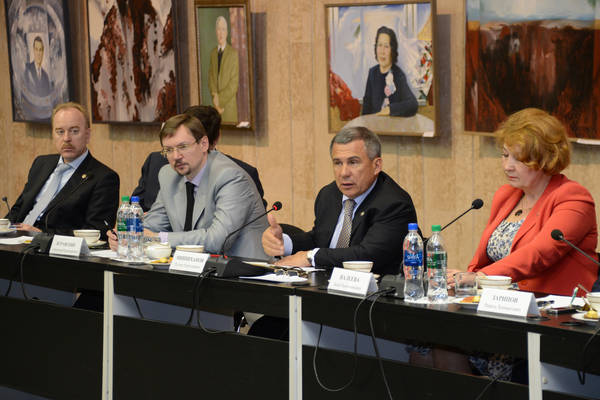 Встреча Президента Республики Татарстан Р.Н.Минниханова с Президентом Международной федерации студенческого спорта (FISU) Клодом-Луи Гальеном и Губернатором Красноярского края Львом Владимировичем Кузнецовым. Фото Ринат Сафин