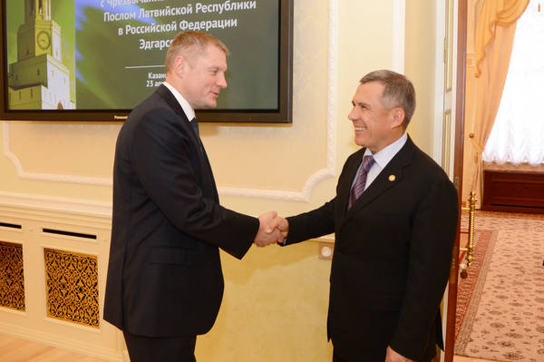 Встреча Президента Республики Татарстан Р.Н.Минниханова с Чрезвычайным и Полномочным Послом Латвийской Республики в Российской Федерации Эдгарсом Скуя. фото Рустема Кадырова.