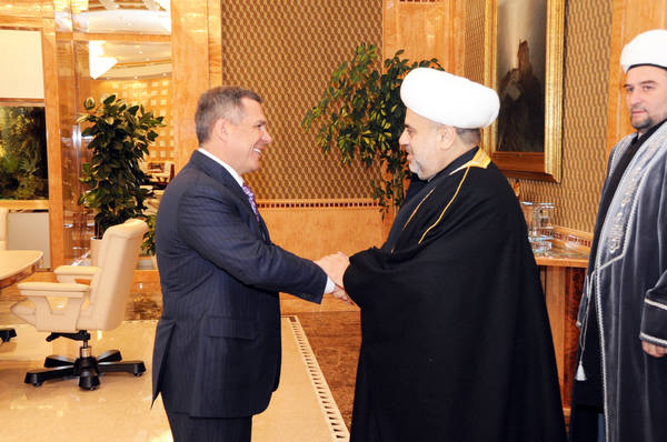 Встреча Президента РТ Р.Н.Минниханова с Председателем Консультативного Совета мусульман СНГ - Председателем Духовного управления мусульман Кавказа Аллахшукюром Пашазаде. фото Р.Кадырова.