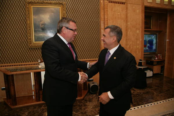 Встреча Президента РТ Р.Н.Минниханова с Президентом – председателем правления ОАО Банк ВТБ Костиным Андреем Леонидовичем: фото М. Козловского