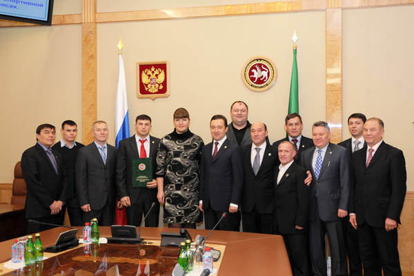 Встреча Премьер-министра РТ И.Ш.Халикова с победителями и призерами чемпионата мира по спортивной борьбе на поясах.фото Р.Кадырова.