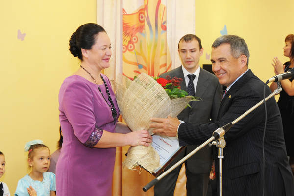 Торжественное открытие детского сада, построенного по республиканской программе "Бэлэкэч" с участием Президента РТ Р.Н.Минниханова.фото Р.Кадырова.
