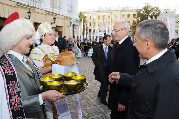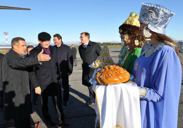 Прибытие в РТ Президента Республики Башкортостан Рустэма Закиевича Хамитова. Встречает Президент РТ Р.Н.Минниханов. Фото Александра Невзорова.