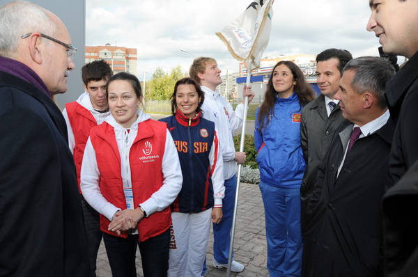 Посещение Президентом Республики Татарстан Р.Н.Миннихановым и Президентом Республики Башкортостан Р.З.Хамитовым Деревни Универсиады.фото Р.Кадырова.