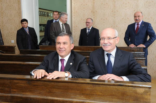 Посещение Президентом Республики Татарстан Р.Н.Миннихановым и Президентом Республики Башкортостан Р.З.Хамитовым Казанского (Приволжского) Федерального Университета.фото Р.Кадырова.