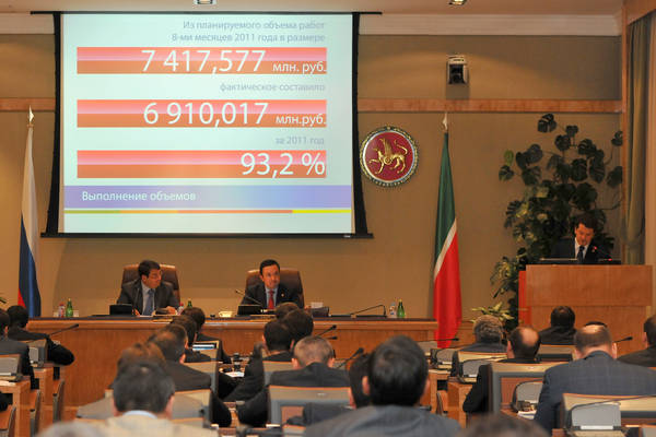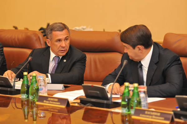 Совещание по подготовке транспортной инфраструктуры г.Казани к Универсиаде 2013 года. Проводит Министр транспорта РФ И.Е.Левитин. Принимает участие Премьер-министр РТ И.Ш.Халиков. Фото Ринат Сафин