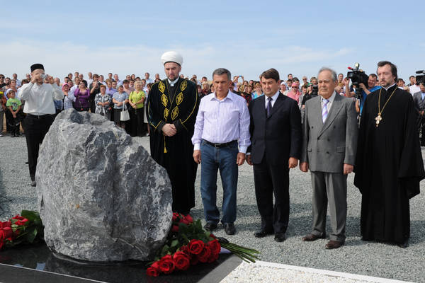 Церемония закладки первого камня под строительство мечети и часовни в память по погибшим на теплоходе «Булгария». Принимают участие Министр транспорта РФ И.Е.Левитин и Президент РТ Р.Н.Минниханов. фото Р.Кадырова.